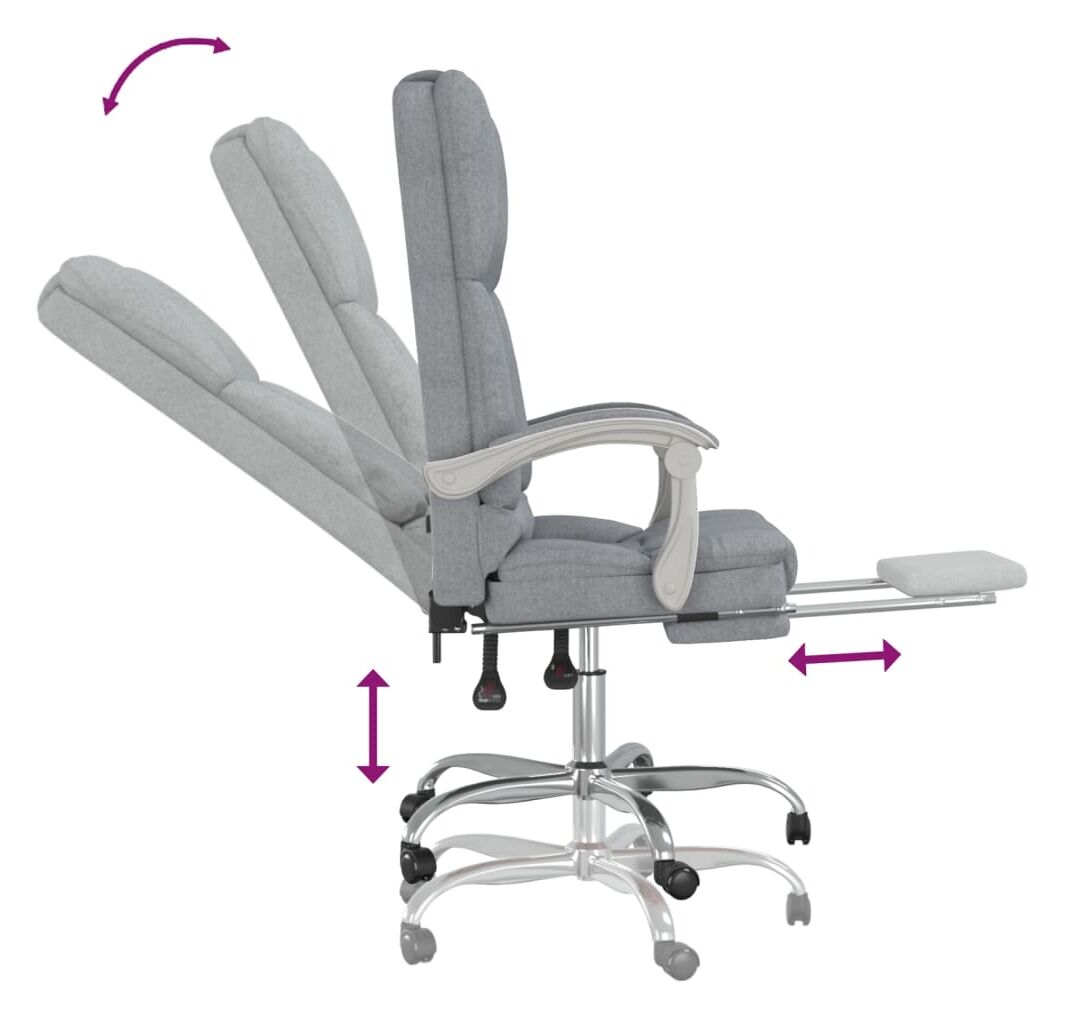 Fotoliu de birou rabatabil cu masaj, gri deschis, textil