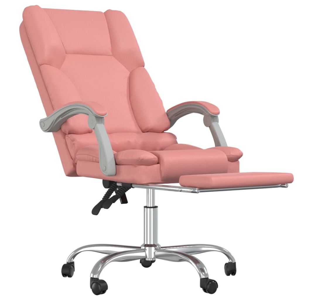 Fotoliu de birou rabatabil cu masaj, roz, piele ecologică