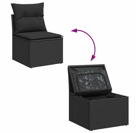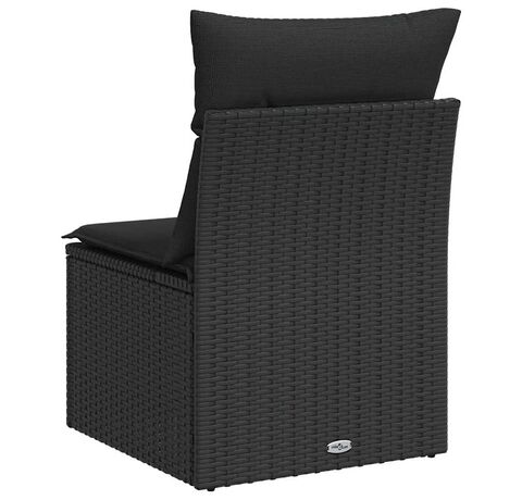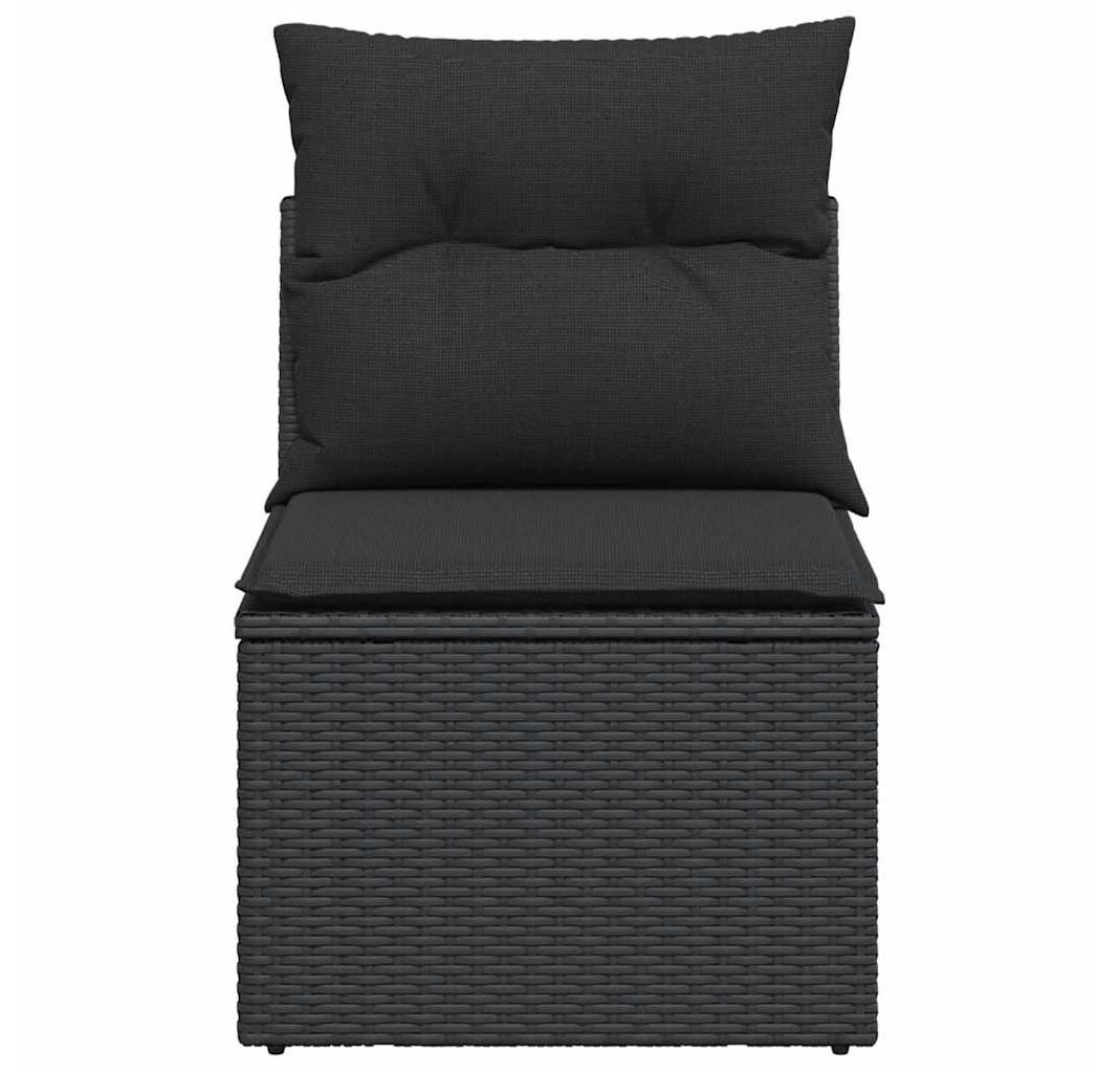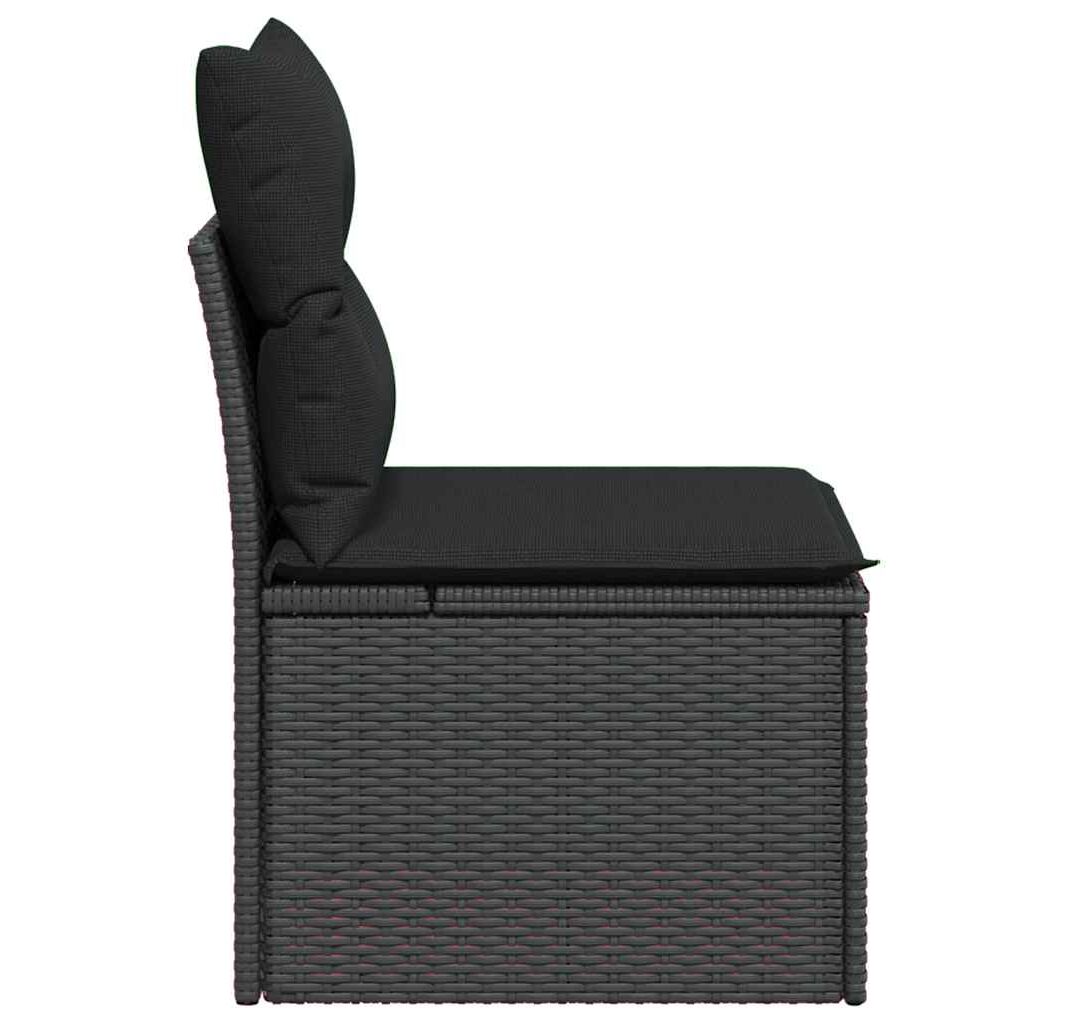 Fotoliu de grădină fără cotiere, cu perne, negru, poliratan
