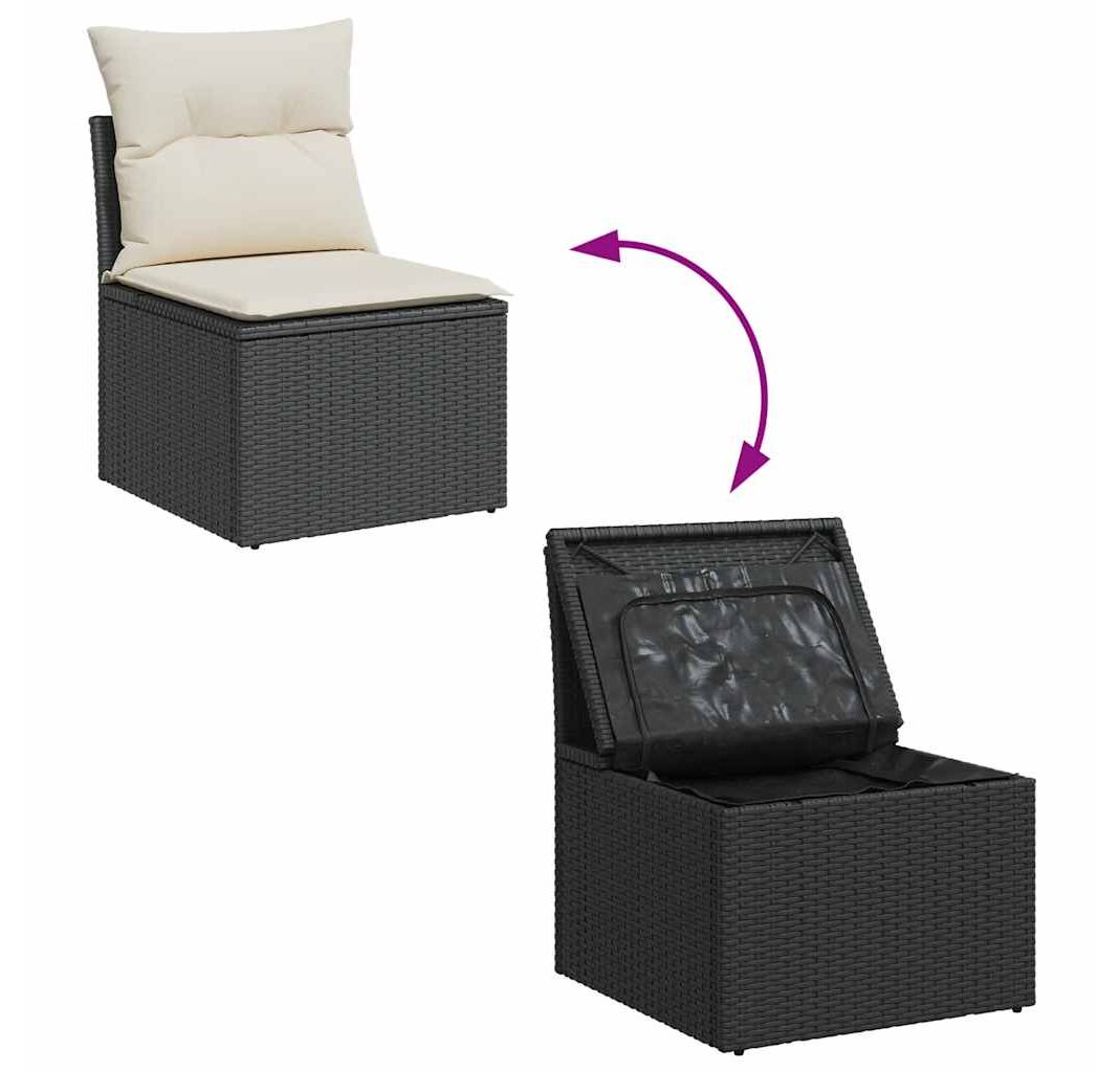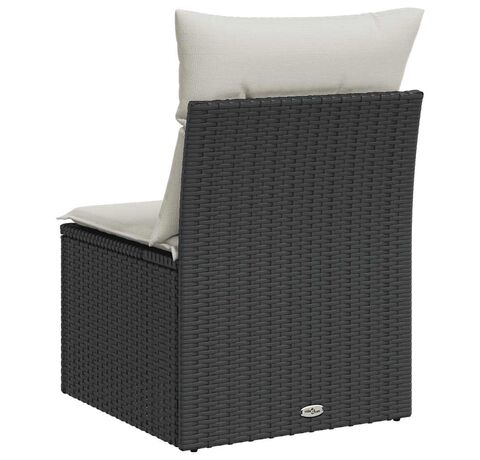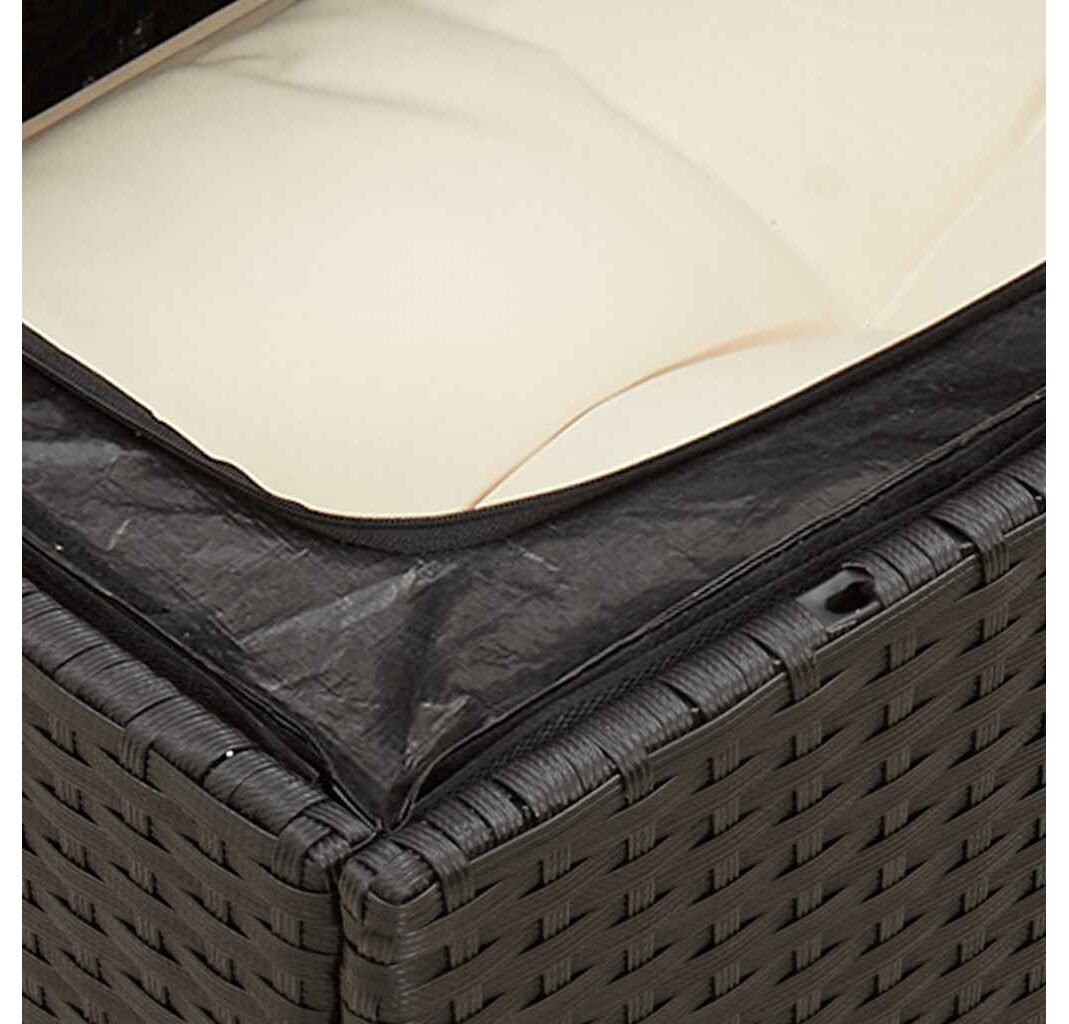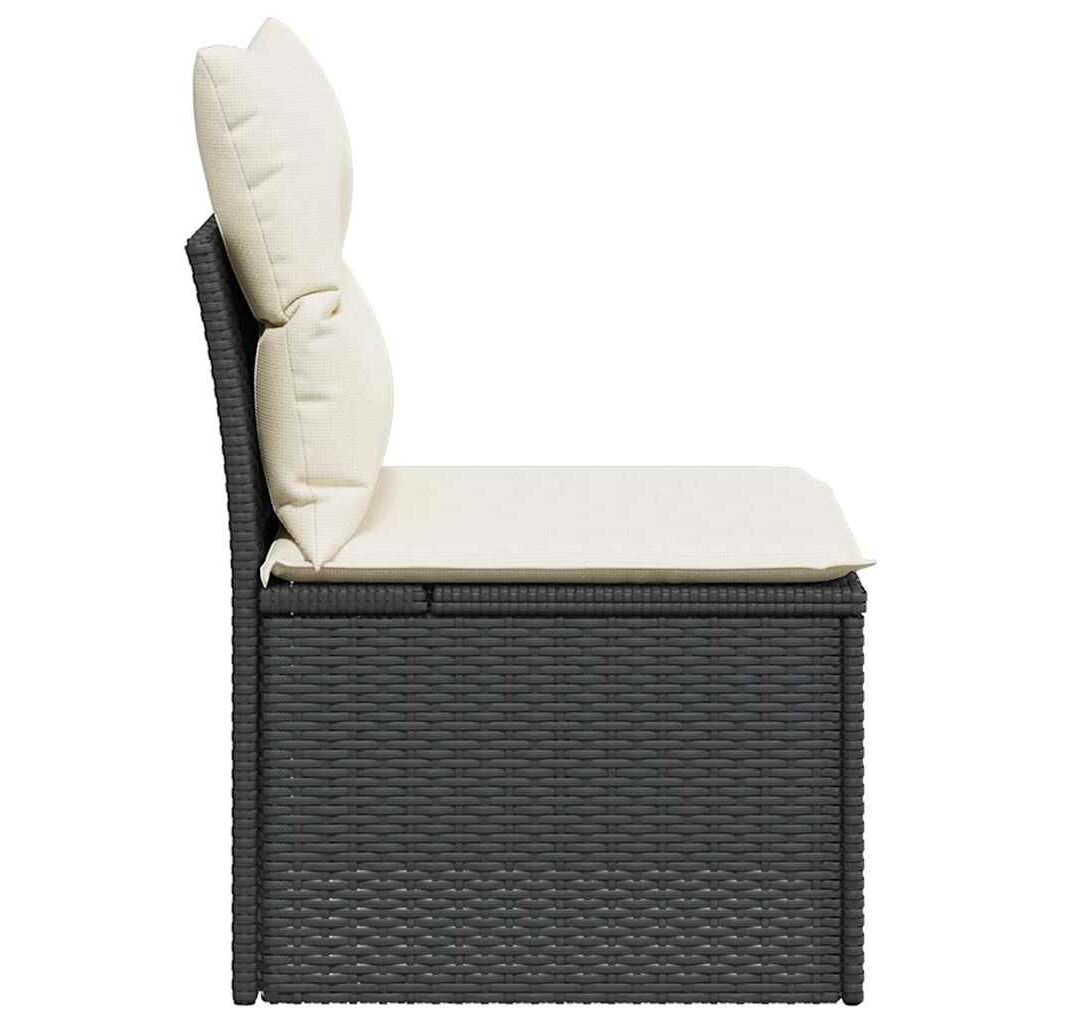 Fotoliu de grădină fără cotiere, cu perne, negru, poliratan
