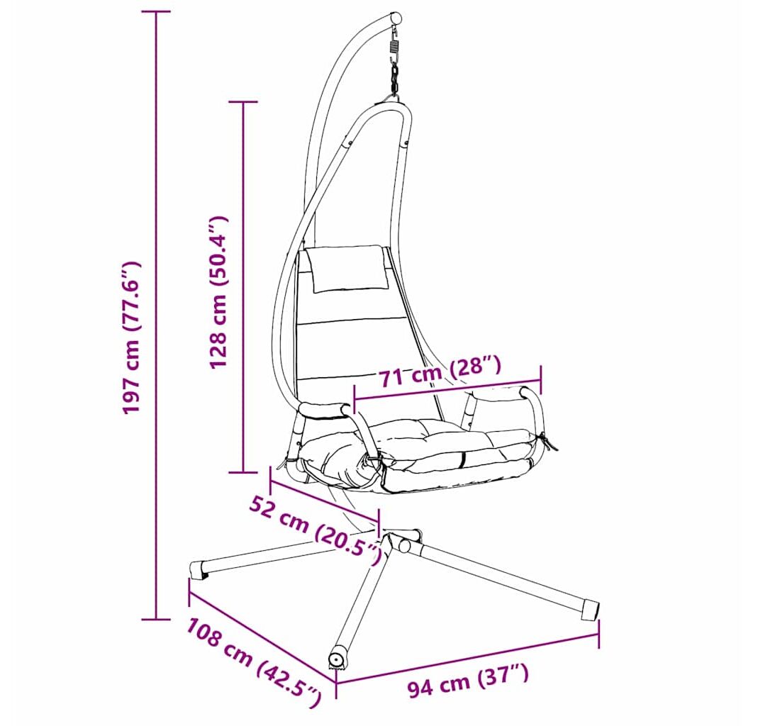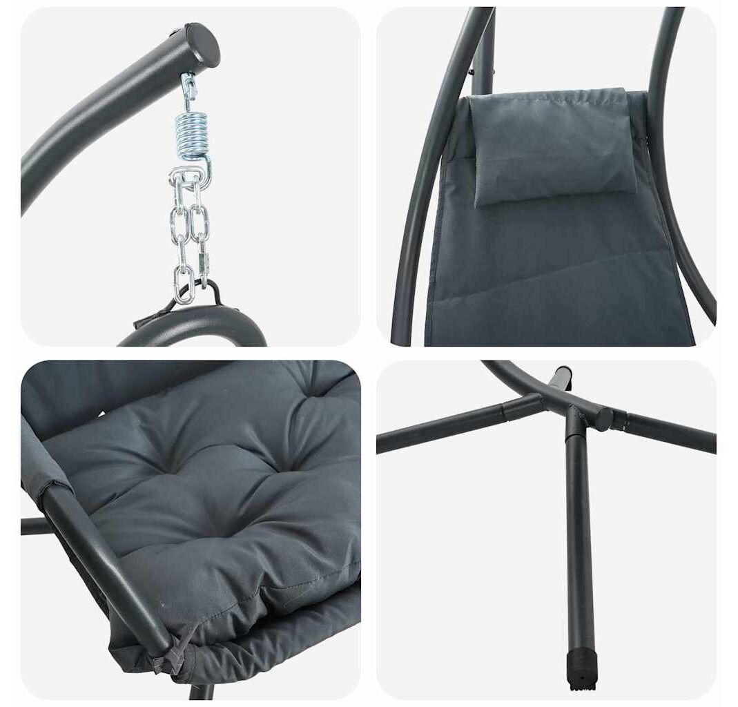 - Construcție Solidă: Făcut din metal tare și țesătură moale, fotoliul ăsta suspendat oferă suport solid, menținând în același timp un șezut confortabil. E un must-have pentru relaxare în aer liber.