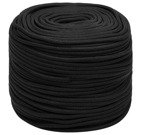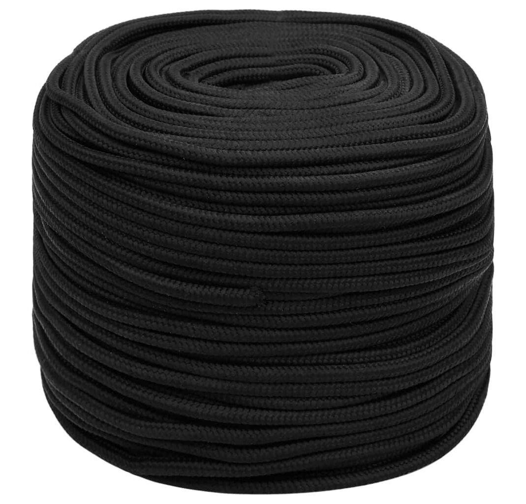 Frânghie de barcă, negru complet, 10 mm, 100 m, polipropilenă