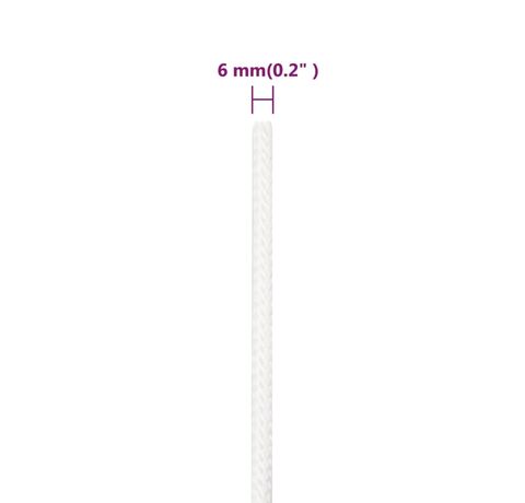 Frânghie de barcă, alb complet, 6 mm, 100 m, polipropilenă