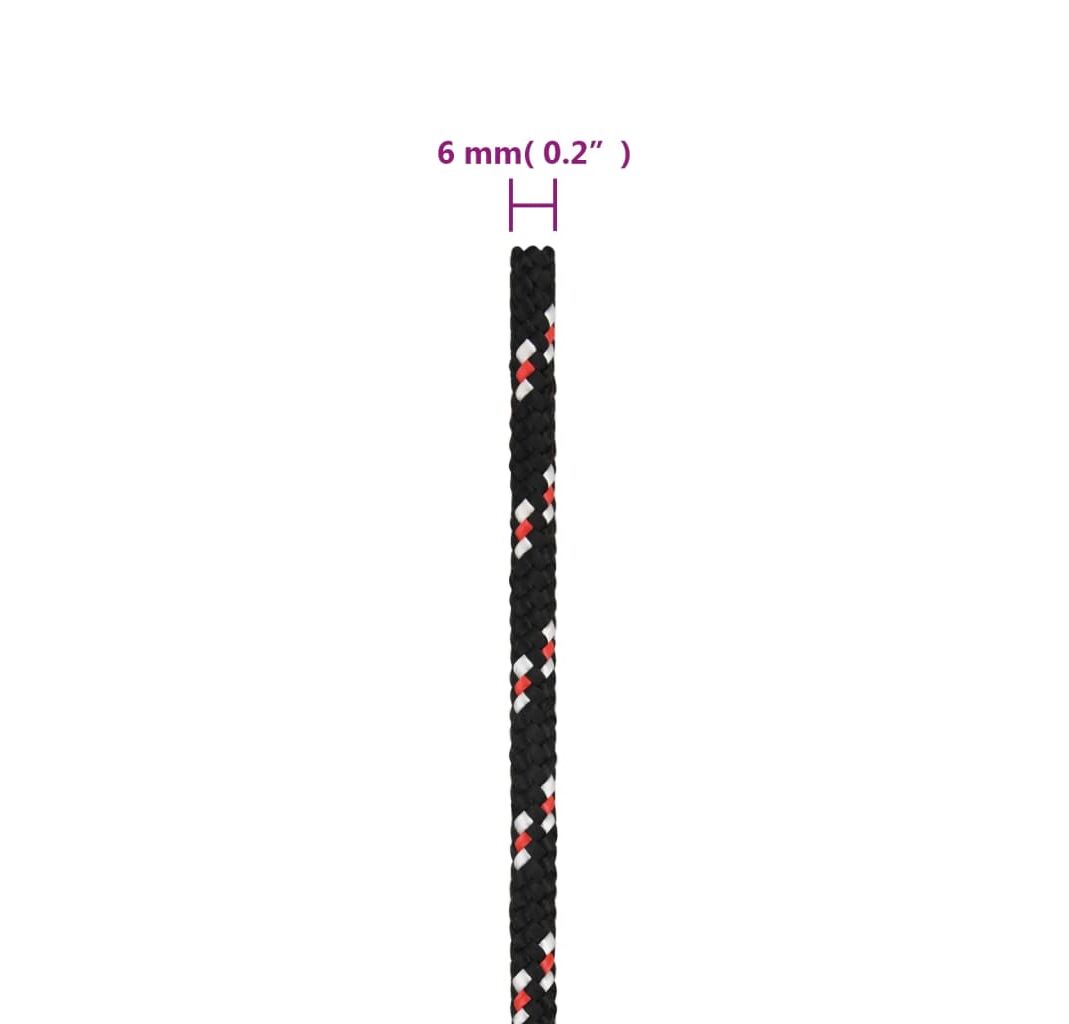 Frânghie de barcă, negru, 6 mm, 25 m, polipropilenă