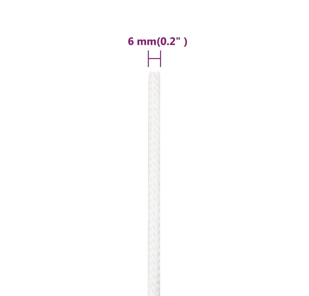 Frânghie de barcă, alb complet, 6 mm, 50 m, polipropilenă