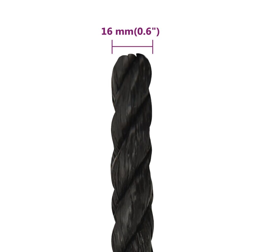 - Material durabil: Frânghia răsucită este fabricată din polipropilenă durabilă. Este rezistentă la raze UV și la intemperii, ceea ce o face durabilă pentru timp îndelungat.