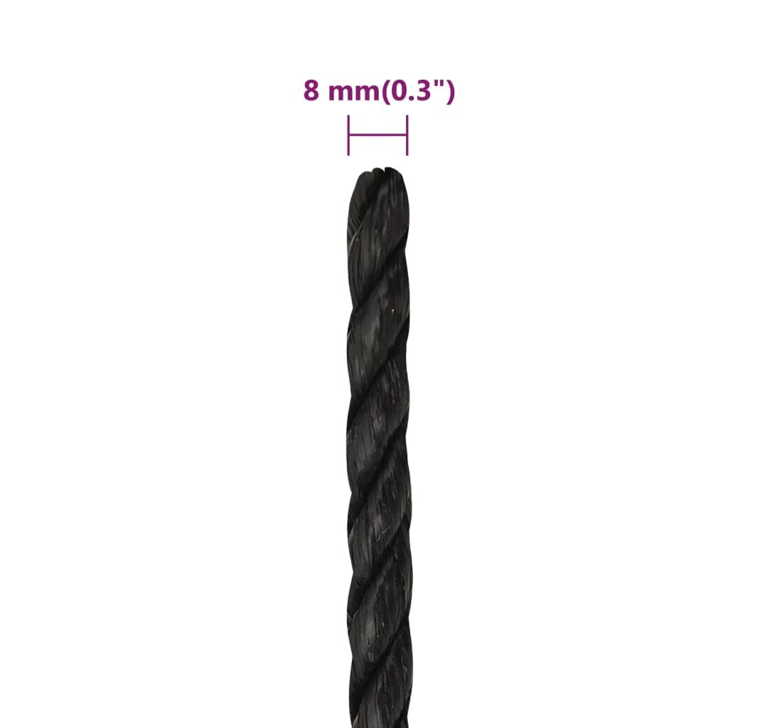 - Material durabil: Frânghia răsucită este fabricată din polipropilenă durabilă. Este rezistentă la raze UV și la intemperii, ceea ce o face durabilă pentru timp îndelungat.