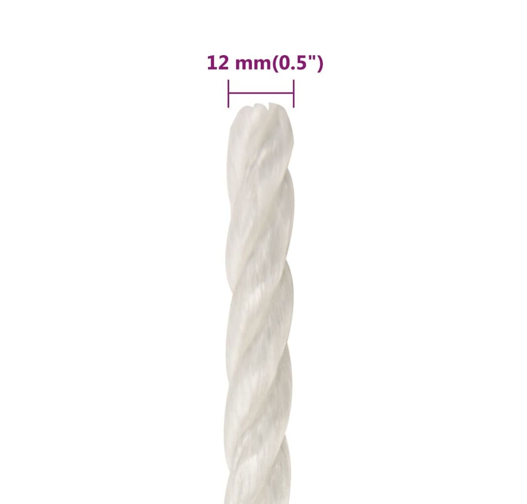 Frânghie de lucru, Alb, 12 mm, 50 m, polipropilenă