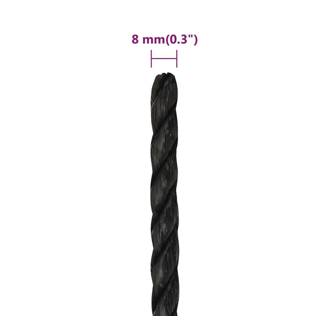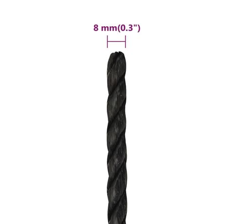 Frânghie de lucru, negru, 8 mm, 50 m, polipropilenă