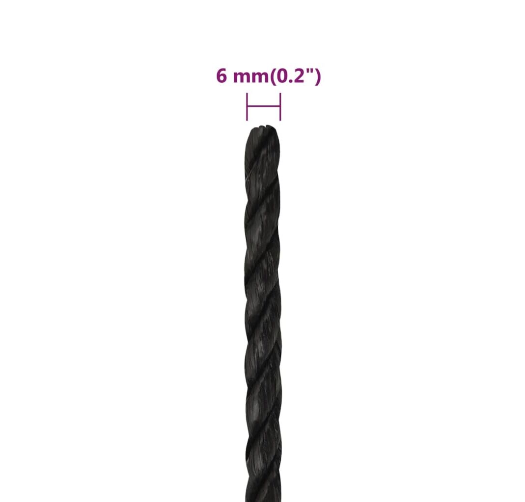 Frânghie de lucru, negru, 6 mm, 250 m, polipropilenă