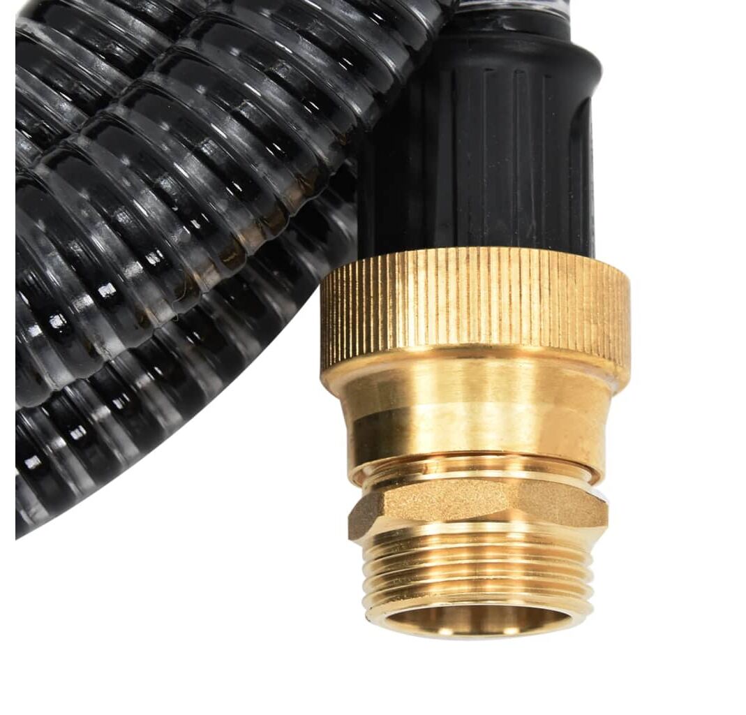 Furtun de aspirație cu racorduri din alamă, negru 1,1" 25 m PVC