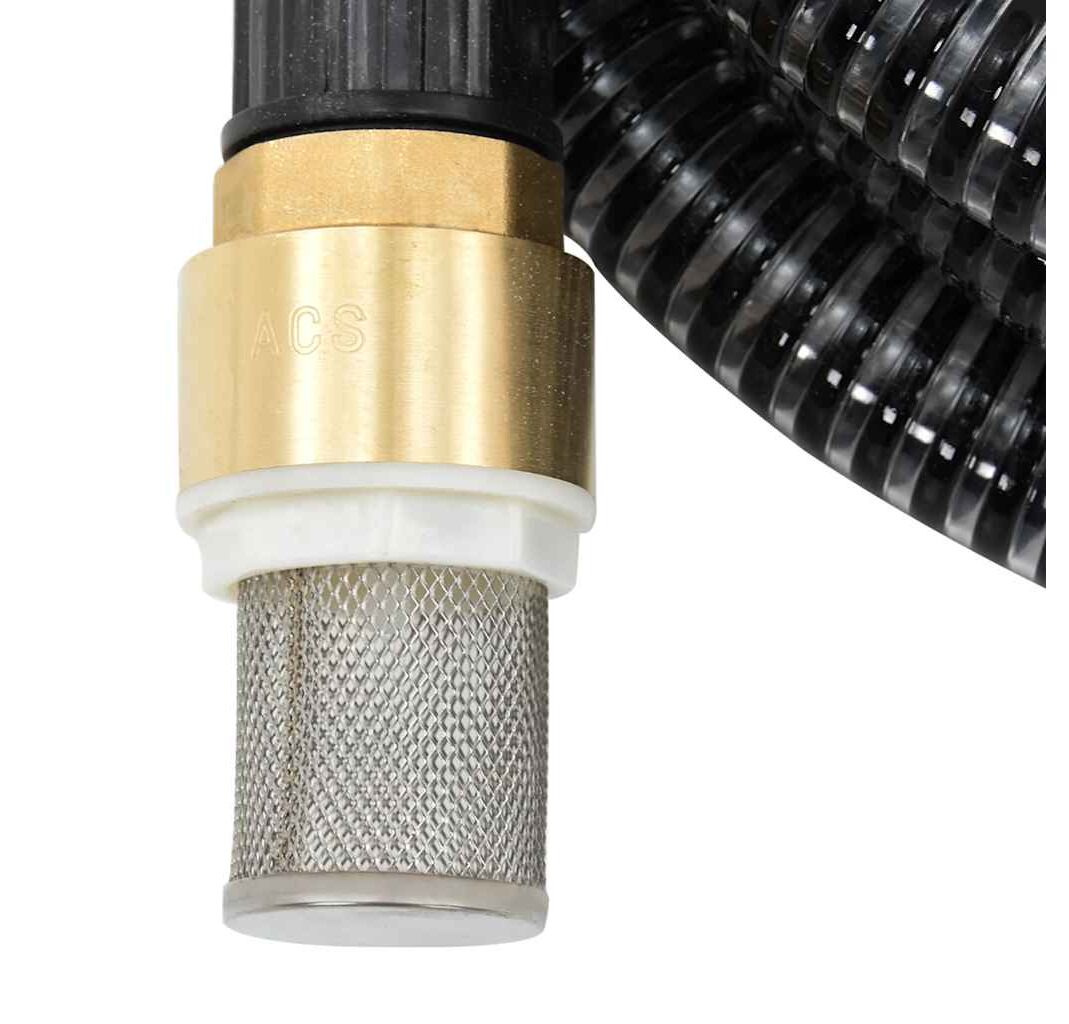 Furtun de aspirație cu racorduri din alamă, negru 1,1" 5 m, PVC