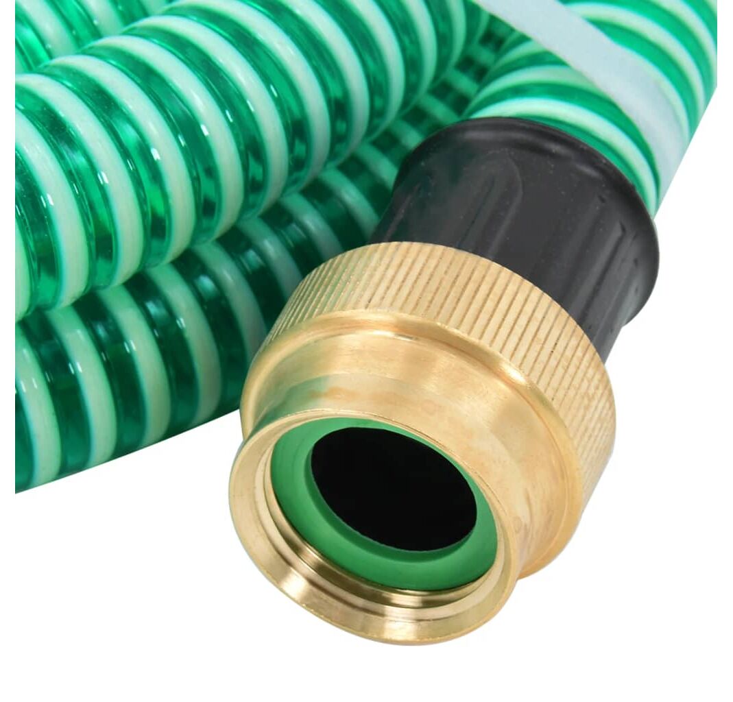 Furtun de aspirație cu racorduri din alamă, verde 1,1" 15 m PVC
