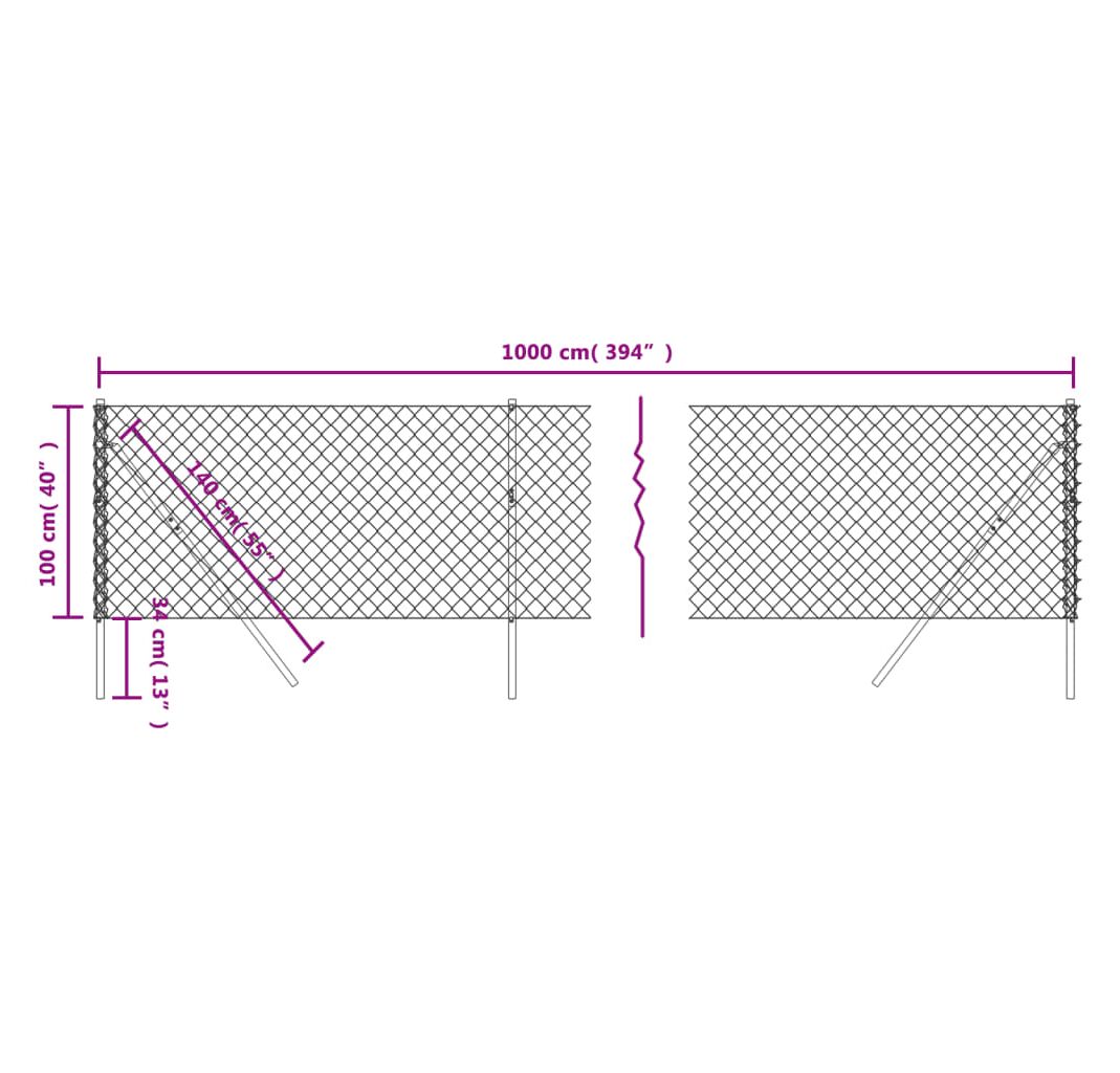 Gard de plasă de sârmă, argintiu, 1x10 m