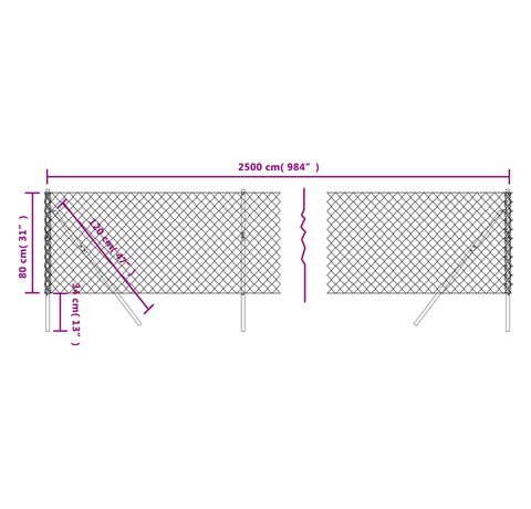 - Diametru sârmă de margine: 1,6/2,5 mm (sârmă de oțel 1,6 mm; 2,5 mm inclusiv stratul din PVC)