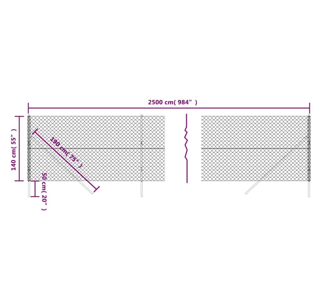 • Diametru sârmă de margine: 1,6/2,5 mm (sârmă de oțel 1,6 mm; 2,5 mm inclusiv stratul din PVC)