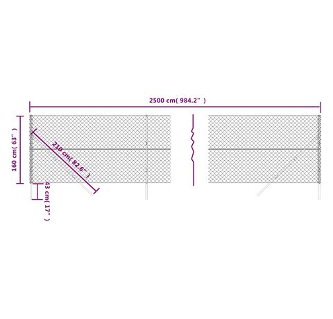 - Diametru sârmă de margine: 1,6/2,5 mm (sârmă de oțel 1,6 mm; 2,5 mm inclusiv stratul din PVC)