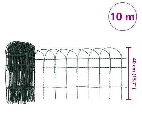 Acest gard de delimitare elegant, cu o lungime de 10 m, este conceput pentru a proteja marginile grădinii sau ale gazonului. Datorită materialelor de înaltă calitate, gardul nostru de delimitare este rezistent la intemperii și apă, asigurând, astfel, o folosire îndelungată. Acest gard decorativ vă ajută să păstrați grădina curată și ordonată și adaugă, de asemenea, un aspect bine definit oricărui aranjament peisagistic sau limitelor acestuia. Iar designul cu sârmă din fier ține eficient animalele în afara straturilor de flori și evită pătrunderile dăunătoare. În plus, gardul de delimitare poate fi fixat în pământ prin capetele sale ascuțite pentru a spori siguranța și stabilitatea.