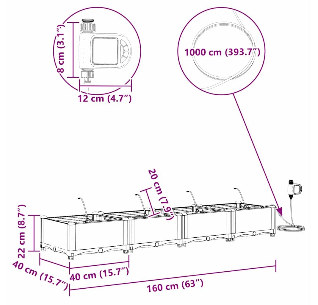 - Sistem de Irigare Integrat Bucură-te de un sistem de udare care face îngrijirea plantelor floare la ureche și le ajută să crească frumos. Asta reduce nevoia de a uda constant, așa că poți să te relaxezi în timp ce grădinile tale prosperă.