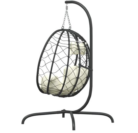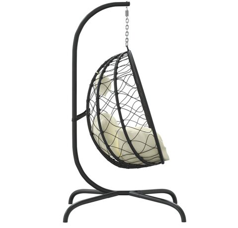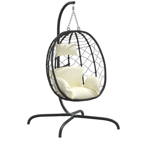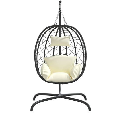 Scaun suspendat tip ou cu pernă, alb crem, poliratan și oțel