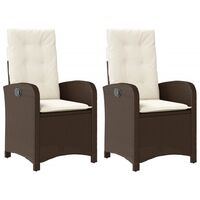 Scaune de grădină rabatabile, 2 buc., cu perne, maro, poliratan