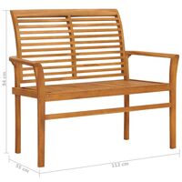 Bancă de grădină, cu pernă neagră, 112 cm, lemn masiv de tec