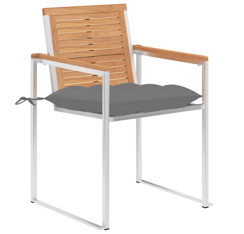 Construită din lemn de tec de esență tare, extrem de rezistent, această piesă de mobilier a fost uscată în cuptor și apoi șlefuită fin, pentru un aspect foarte neted. Lemnul de tec este cunoscut pentru robustețea sa excepțională și rezistența la intemperii, fiind mai potrivit pentru mobilierul de grădină decât orice alt tip de lemn. Lemnul de tec este alegerea perfectă dacă doriți să achiziționați o piesă de mobilier de grădină care va rezista o perioadă lungă de timp. Scaunele sunt, de asemenea, fabricate din oțel inoxidabil 304 de înaltă calitate, ceea ce le face rezistente la rugină și ușor de curățat. În plus, perna oferă un plus de confort în timpul relaxării. Fiecare pernă are două seturi de sfori, pentru o fixare mai bună pe scaunul de exterior.