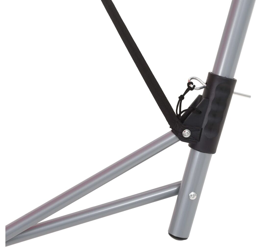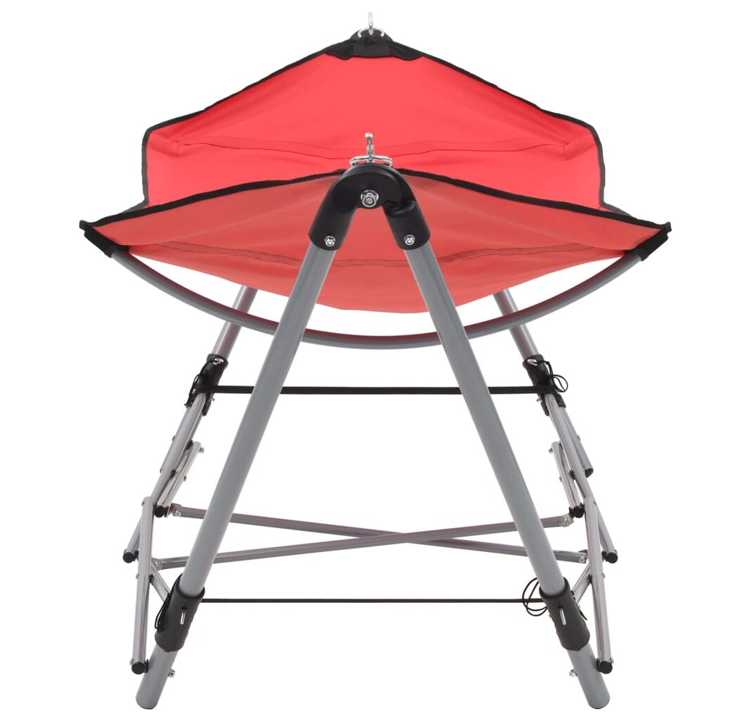 Cadrul hamacului este realizat din oțel vopsit electrostatic, în timp ce hamacul este fabricat din țesătură oxford 600D, rezistentă la uzură, așadar acest hamac este foarte robust și durabil. Acest scaun leagăn relaxant poate fi montat în doar câteva secunde și, de asemenea, se poate plia cu ușurință. Odată pliat, puteți depozita sau puteți lua acest hamac ușor în sacul de transport furnizat.
