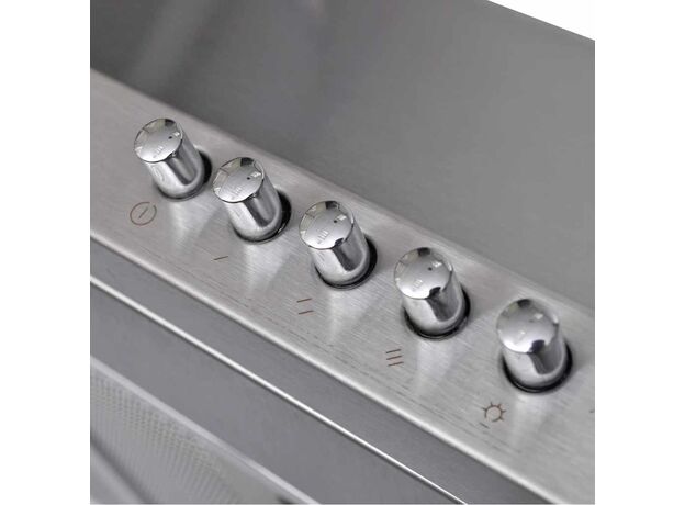 Dispune de o suflantă de 550 m³/h, două filtre de grăsime din aluminiu lavabile și un orificiu intern de aerisire. Lumina inclusă luminează suprafața de gătit de dedesubt. Înălțimea coșului de fum poate fi extinsă de la 300 mm la 540 mm, în funcție de nevoile dumneavoastră. Este echipată cu 5 butoane, permițându-vă să controlați cu ușurință hota de bucătărie.