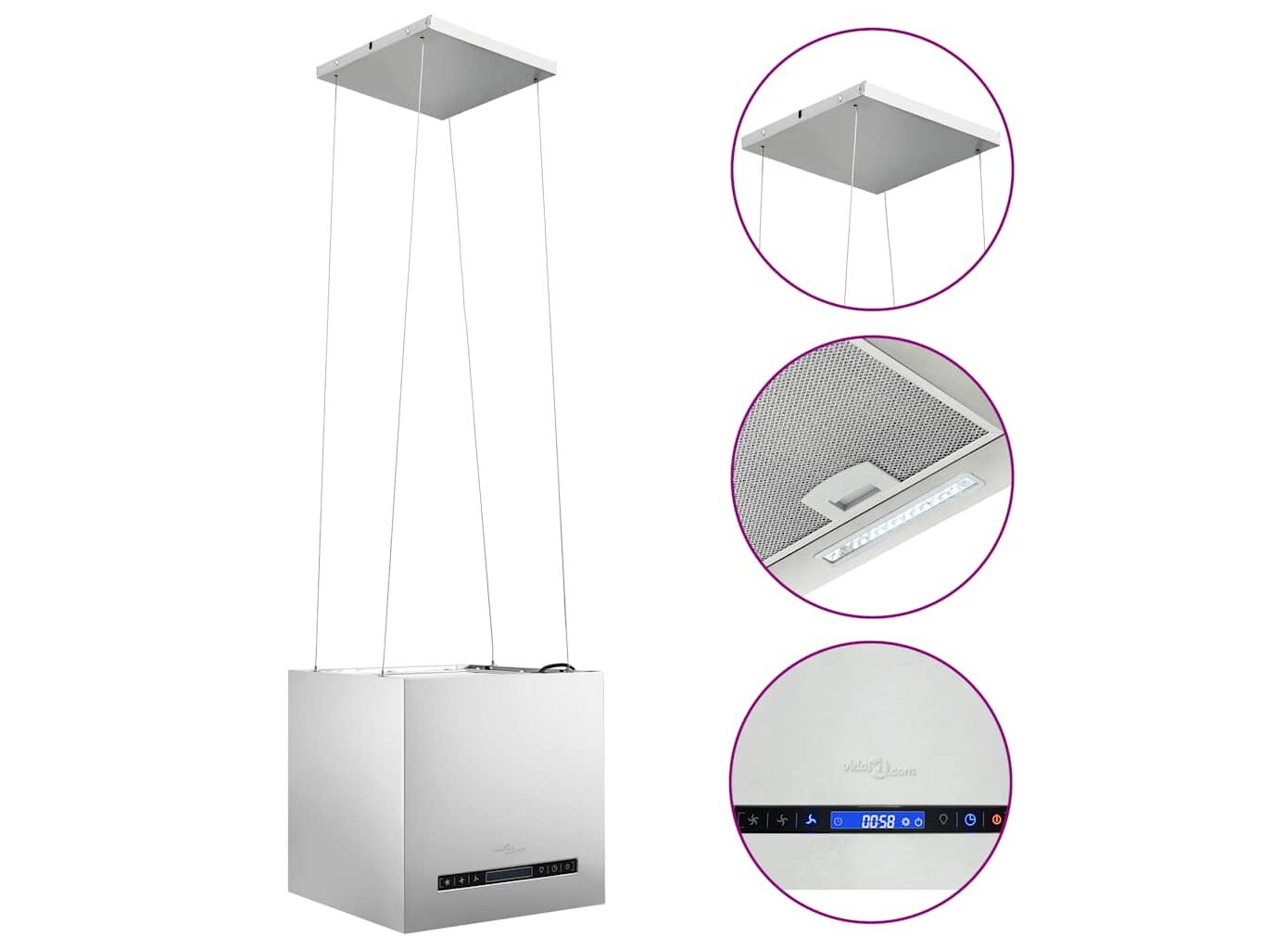 Această hotă suspendată puternică cu design tip insulă și cu un nivel de zgomot redus, pentru bucătării, este ideală pentru extragerea eficientă a fumului, grăsimii, umezelii și a căldurii din bucătăria dvs. Carcasa sa elegantă din oțel inoxidabil va oferi un aspect stilat și modern bucătăriei dvs.