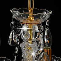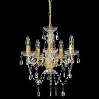 Candelabru cu mărgele de cristal, auriu, rotund, 5 x E14