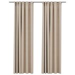 Perdele opace aspect pânză, cârlige, 2 buc. bej, 140x225 cm