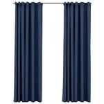 Perdele opace aspect pânză cârlige, 2 buc, albastru, 140x225 cm