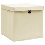 Cutii depozitare cu capace 10 buc. crem, 32x32x32 cm, textil