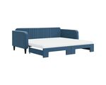 Pat de zi cu extensie și saltele, albastru, 100x200 cm, catifea