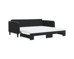Pat de zi cu extensie și saltele, negru, 100x200 cm, catifea