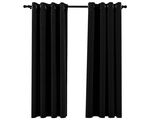 Perdele opace, aspect pânză, ocheți, 2 buc., negru, 140x175 cm