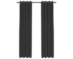 Perdele opace, aspect pânză, ocheți, 2 buc., negru, 140x245 cm