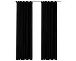 Perdele opace aspect pânză, cârlige, 2 buc., negru, 140x245 cm