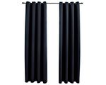 Draperii opace cu inele metalice, 2 buc., negru, 140 x 245 cm