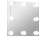 Oglindă de perete cu lumini LED, sticlă, pătrată