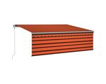 Copertină automată cu stor&senzor vânt&LED portocaliu&maro 4x3m