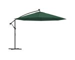 Umbrelă în consolă cu LED-uri și stâlp metalic, verde, 350 cm