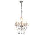 Candelabru cu mărgele de cristal, argintiu, rotund, 5 x E14