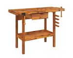 Banc de lucru cu sertar și menghine, 124x52x83 cm, lemn acacia