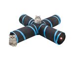 Tunel pentru pisici 4 căi, negru și albastru, 132 cm, poliester