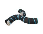 Tunel pentru pisici 3 căi, negru și albastru, 25 cm, poliester