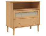 Servantă SENJA, aspect ratan maro, 80x40x80 cm, lemn masiv pin