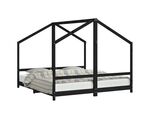 Cadru de pat pentru copii negru 2x(90x190) cm lemn masiv de pin