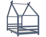 Cadru de pat pentru copii, gri, 90 x 200 cm, lemn masiv de pin